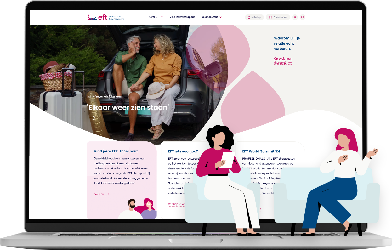 Op de website van ETF kunnen cliënten zich aanmelden voor relatietherapie, gezinstherapie en individuele therapie. Ook relatietherapeuten kunnen zich hier aanmelden als deelnemer om training te volgen, nieuwe kennis te vergaren en in verbinding te komen met elkaar. Om die doelgroepen effectief te bereiken, verbinden en binden aan EFT, ontwikkelden we samen een vernieuwd platform. We spraken hierover met Bram Schuurman, oud-bestuurslid van de stichting.