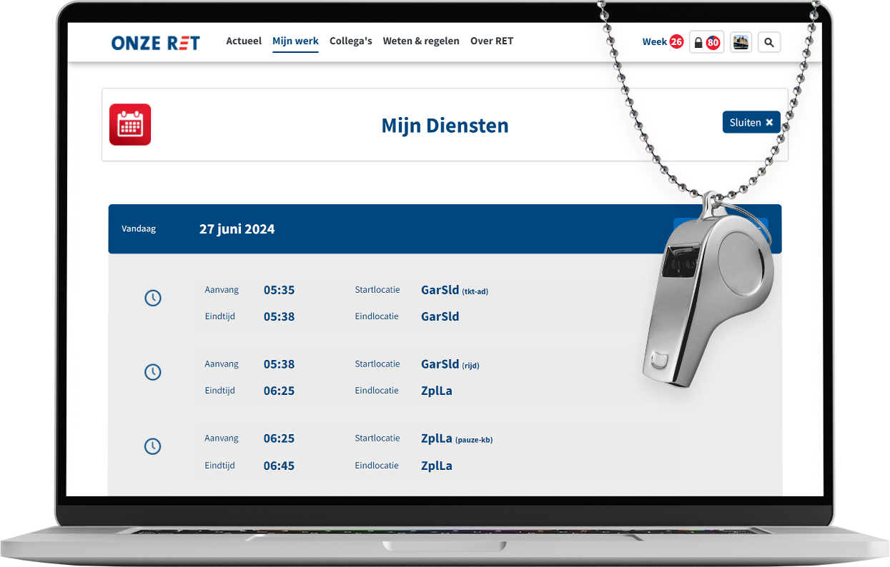 Niet alleen voor de redacteuren, maar ook voor de medewerkers van de RET is het intranet essentieel. Emilie: “Het is heel belangrijk dat trambestuurders en chauffeurs hun diensten zien: waar moeten ze zijn op welk moment, en hoe moet ik bijvoorbeeld schade melden? Dat is echt een proces des RET’s, en vormt een belangrijk onderdeel van de dagelijkse werkzaamheden. Dat is een behoefte waar het intranet in voorziet.”
