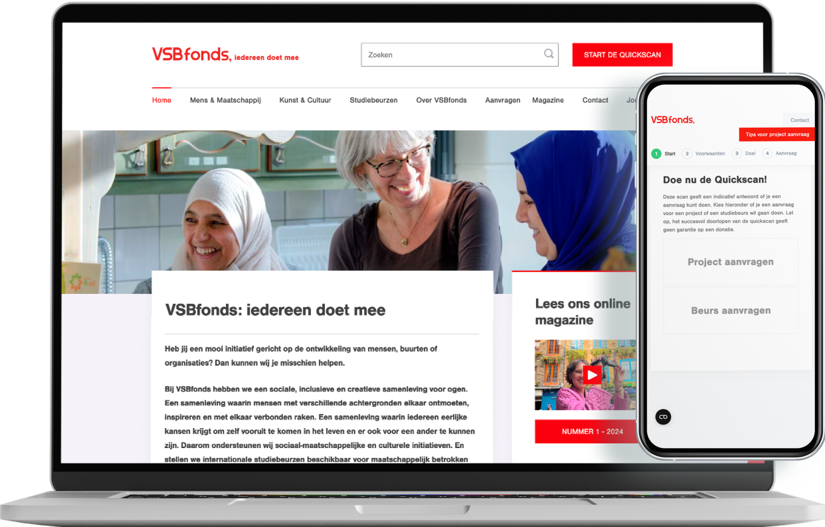 Het VSBfonds ondersteunt projecten en initiatieven die bijdragen aan de kwaliteit van de Nederlandse samenleving. Ook verstrekt zij beurzen voor studie of onderzoek aan maatschappelijk betrokken studenten. Om aanvragen zo soepel mogelijk te laten verlopen voor de aanvragers én het VSBfonds hebben wij binnen de corporate website een digitale aanvraagmodule voor projecten en beurzen ontwikkeld.