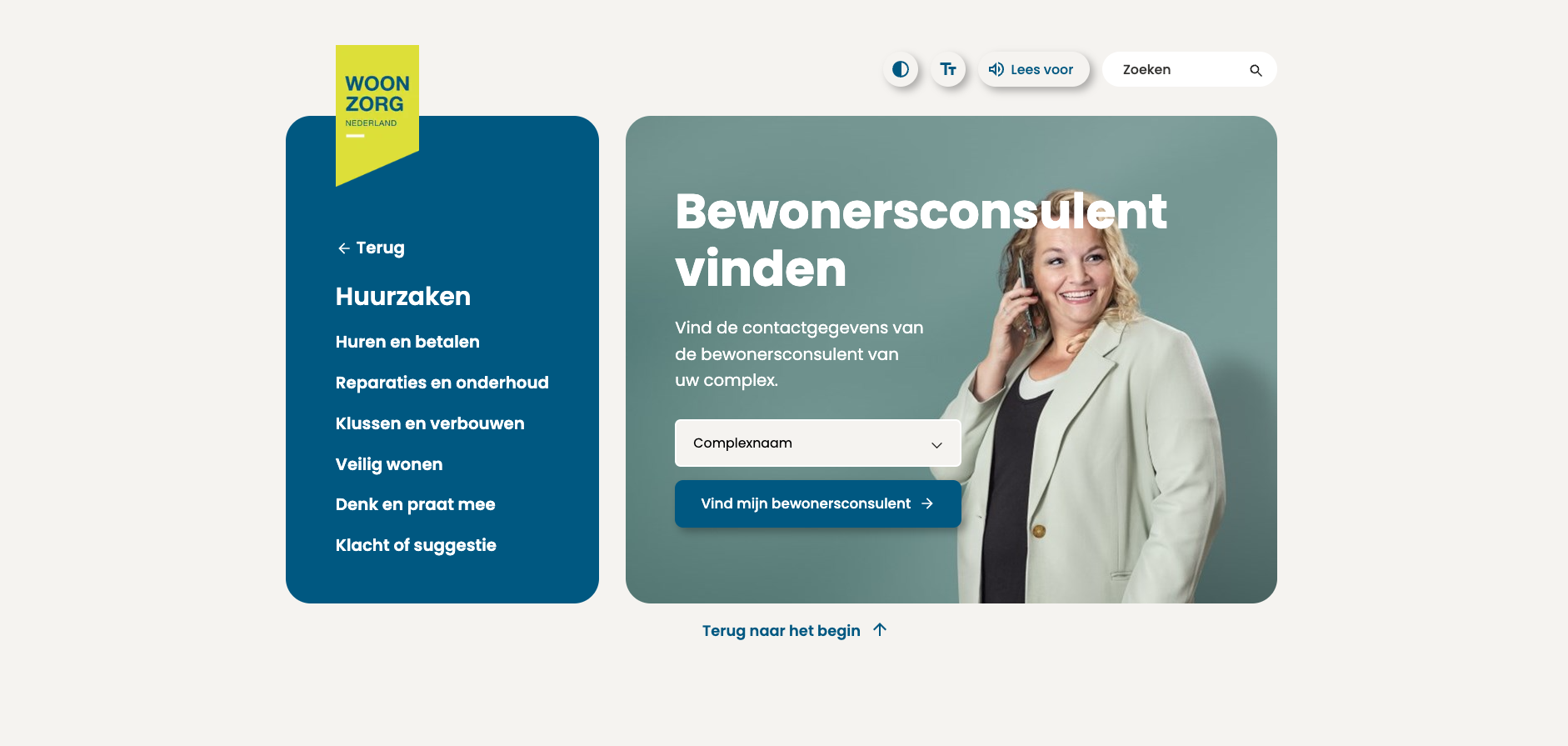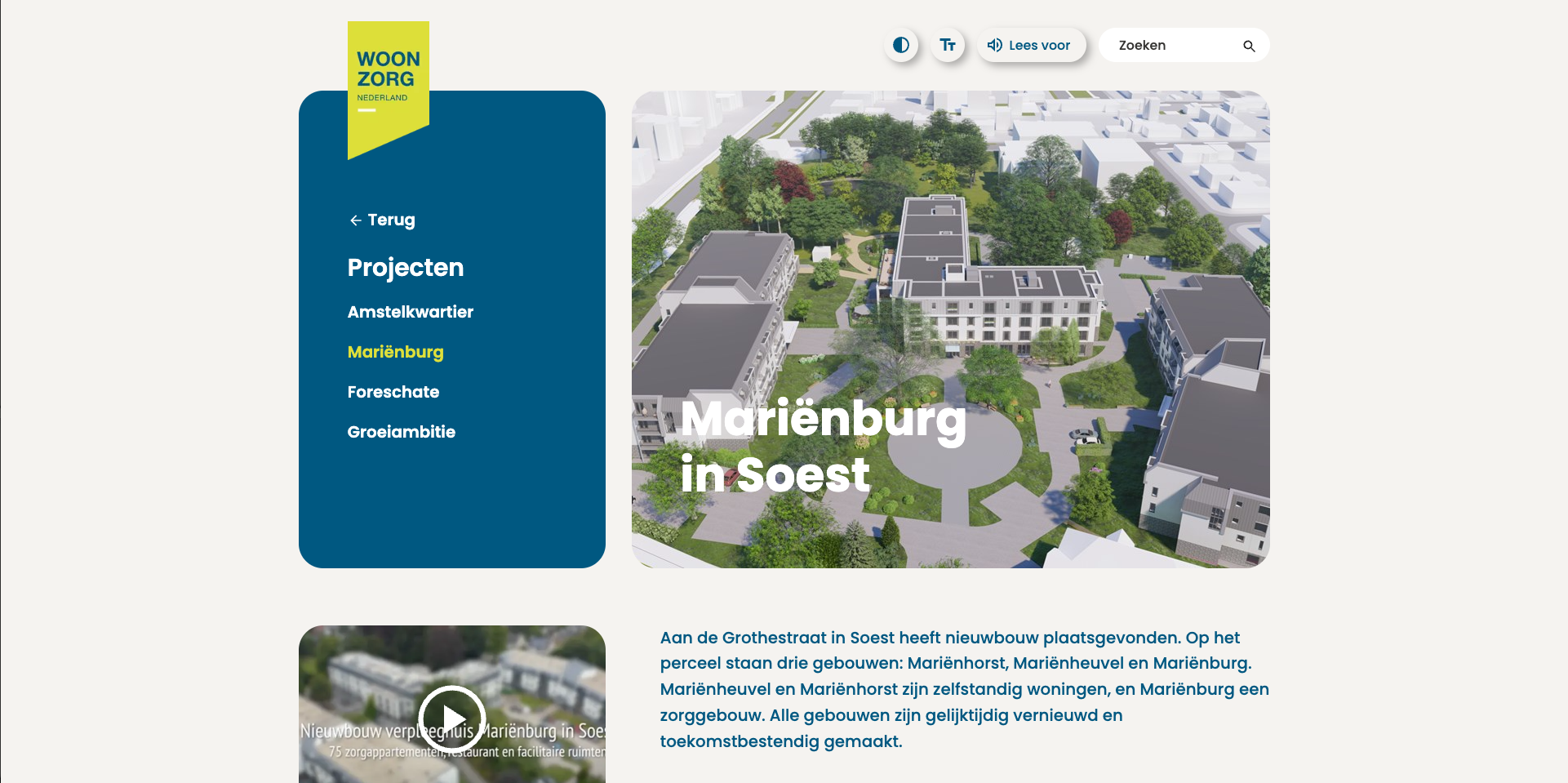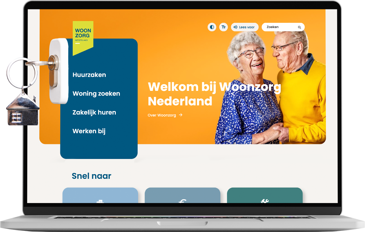 De website heeft veel moderne functionaliteiten, ook op het gebied van digitale toegankelijkheid. De website voldoet aan de Web Content Accessibility Guidelines (WCAG), een belangrijk onderdeel van het programma van eisen dat het team van Woonzorg vooraf had opgesteld. “Er is een goed contrast qua kleuren, we hebben de tekstgrootte veranderd en de voorleesfunctie is een must voor onze doelgroep”, vertelt Jacolien.