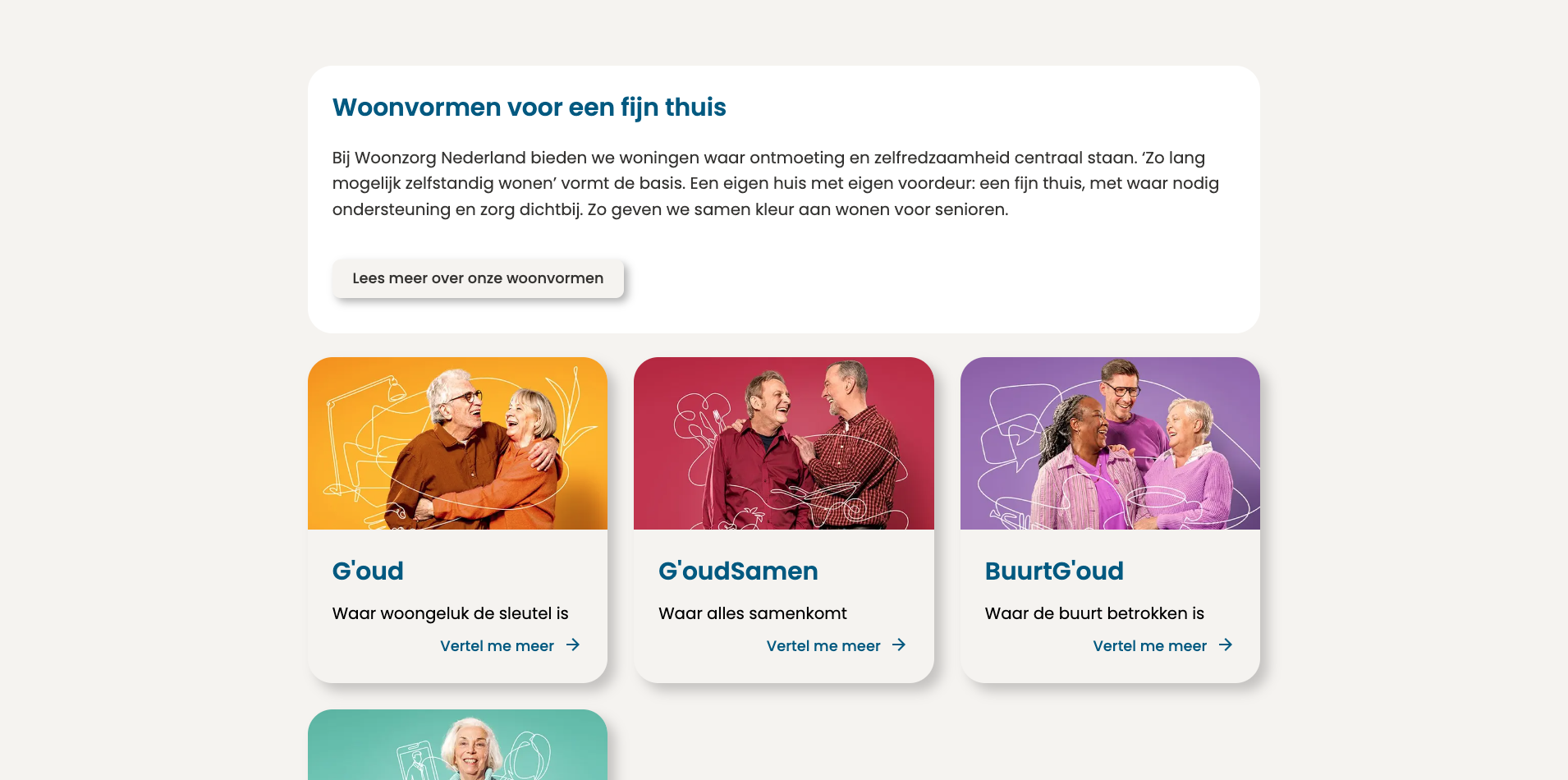 De ambitie van Woonzorg is om de ouderenhuisvesting in Nederland op een hoger plan te brengen. De organisatie zet zich in voor senioren, zodat zij een plek vinden die aansluit bij hun woonwensen. Zo kunnen zij fijn ouder worden in een prettig huis. Ook richt de corporatie zich op zakelijke huurders van de wooncomplexen. De vernieuwde website van Woonzorg is een middel om deze doelgroepen te helpen navigeren naar een woning die past bij hun wensen. Wij spraken met Jacolien en Menno - oud-Product Owner en de huidige Product Owner bij Woonzorg - over de (door)ontwikkeling van de website.
